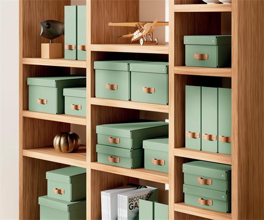 -bőrből készült fogantyúval rendelkezik, így könnyen leemelhető a polcokról és tárolóegységekről